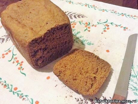 Ингредиенты: - квасное сусло (у меня из «Ашана» в 0,5 банке) – 70 гр; - вода горячая кипяченная – 330 гр; - сахар – 1,5 ст. ложки; - соль – 1,5 ч. ложки; - дрожжи – 2 ч. ложки; - мука пшеничная – 300 гр; - мука ржаная – 260 гр; - специи (тмин и т.д. по желанию и вкусу). Квасное сусло заливаем кипятком, размешиваем и оставляем остывать. Переливаем в чашу хлебопечки. В теплый раствор квасного сусла добавляем сахар и дрожжи, оставляем на 10 минут. Затем добавляем соль и просеянную ржаную и пшеничную муку. Выбираем «Основной режим», вес 750 гр и среднюю корочку. По сигналу наслаждаемся вкусным и невероятно ароматным ржаным хлебом.