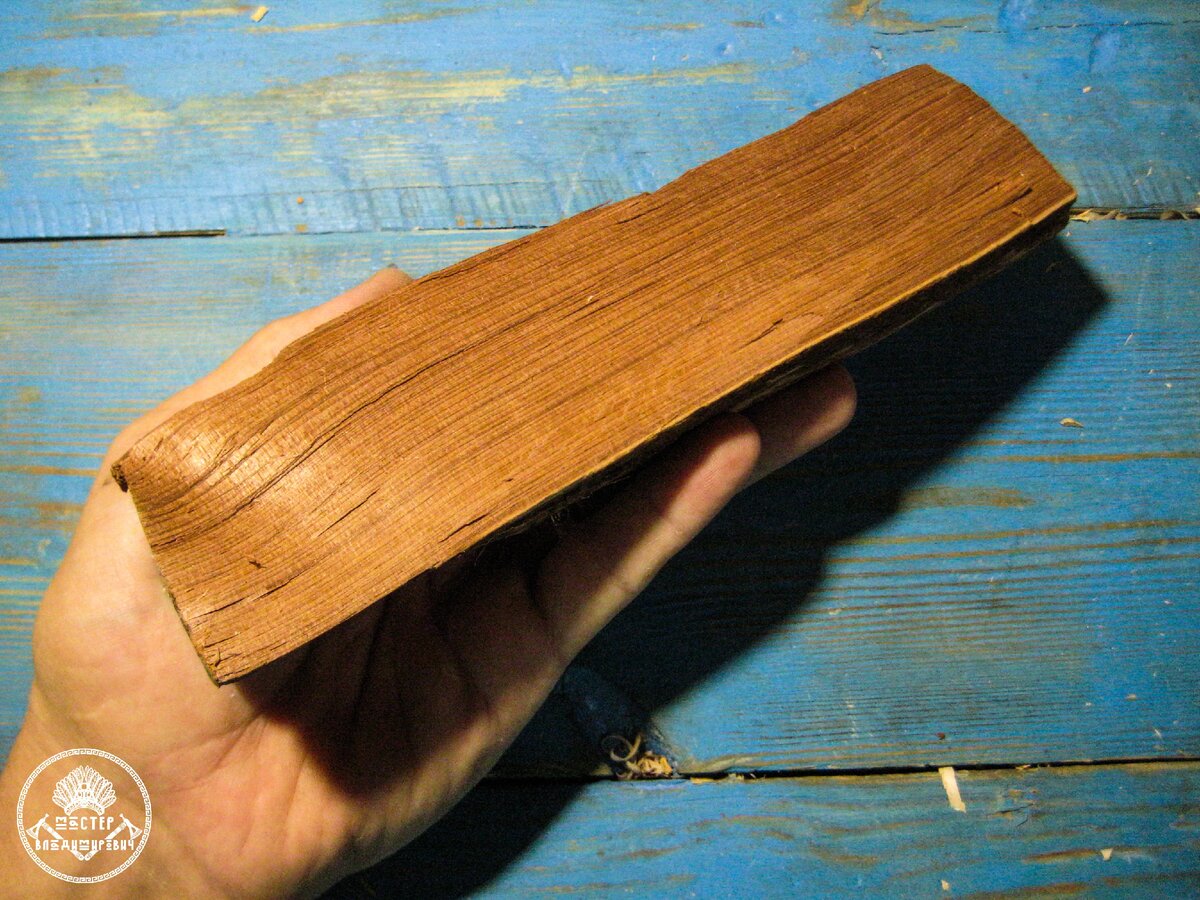 А ведь и вправду, сам напросился. Наводил порядок на полке с материалом и упала деревяшка можжевельника. Ровный такой брусочек и без больших дефектов. Покрутил в руках будущую заготовку. А чего тут думать? Будет ложка. Убрал всё лишнее что мешало начать работу. Поправил инструмент. Уже время после обеда, а я только завтракал. Поэтому, налив чаю решил сначала доделать то что надумал, а потом уж отдых. Может быстрее закончу с изделием. Я даже ничего не размечал и не подпиливал, как обычно делаю. Просто топориком снял лишнее дерево, придав далёкое очертание похожее на ложечку. Это и есть та самая баклуша. Подпиливаю обычно ножовкой по дереву совсем немного в месте где будет плавный переход их черпала в ручку. И топором с обеих сторон подрубаю. Подумал, что если дерево само навязалось, так и какой ложкой станет тоже должна подсказать. Вот рукоятку не дало делать меньше, значит будет узор. Размеры небольшие и я уже стал подумывать что отнесу её в разряд походных. Всё прояснилось, когда я