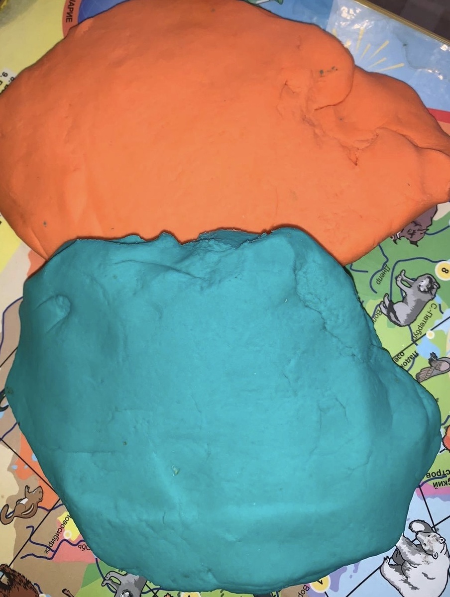 Такое тесто приготовить очень просто и быстро , а главное цвет выбрать можно самому . Нам понадобится: стакан муки (примерно ) 2 ложки соли , 2 ложки лимонной кислоты , пол стакана горячей воды в которую надо положить пищевой краситель . Я замешивала тесто в хлебопечке. По итогу надо смотреть за процессом, потому что может потребоваться либо мука либо вода , а может и не понадобится.👍👍👍 Я делала тесто вместо с детьми и им было очень интересно наблюдать что получится и получится ли вообще