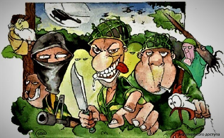 Тайга. Сибирь. Идут военные учения. Группа спецназа сбилась с маршрута и поутру вышла к глухой деревне. Делать нечего, надо спрашивать дорогу. Постучались в крайнюю покосившуюся хату. Вышла скрюченная старушка. - Солдатики! Вас сам Господь Бог прислал помочь бабушке - всплеснула руками пенсионерка. - Подожди бабака - оборвал сержант нам бы дорогу до города спросить... - И дорогу подскажу и самогона с огурцами дам, только помогите касатике бабушке! Сил нет терпеть, достал меня этот гад, в могилу сведет! - Ладно, говори бабака в чем дело, поможем!!! - Вот и ладно! Кабана забить надо. Третий год кормлю ирода, обнаглел совсем! Целыми днями на всю деревню орет, а я ему еду вари да таскай... а сил нет у бабушки. Забейте кабанчика солдатики.... - Не вопрос бабка. Где он? - Знамо где, в сарае - махнула старушка в сторону ветхой постройки на заднем дворе. - Пригляди за вещами, бабака! - спецназовцы отложили в сторону рюкзаки, забросили за спину оружие, закатали рукава и шустро юркнули