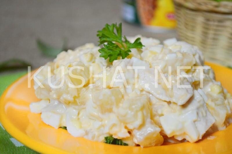 Салат с курицей, ананасами и сыром. Пошаговый рецепт с фото