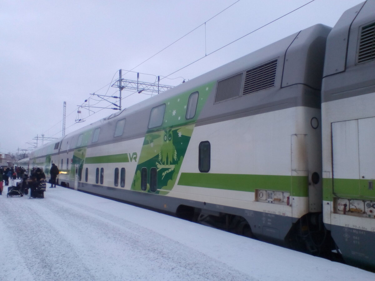 Всем привет! Продолжаю рассказ о путешествии в резиденцию Санта-Клауса в Лапландии и сегодня расскажу, какое впечатление произвел на нас полярный экспресс – поезд, на котором туристы едут из Хельсинки в Рованиеми, где и расположена резиденция финского деда-Мороза – Йоулопукки. Сам поезд довольно уютный – снаружи разрисован оленями, как новогодний свитер, в купе лежат бутылочки воды с ликом Санта-Клауса и вот это все. Часть вагонов двухэтажная – там расположены купе, причем разных типов. Общее у них то, что они двухместные – то есть, довольно компактные, с двумя полками одна над одной. Но есть и свои плюсы. Прямо возле входа расположены купе для маломобильных категорий – там более широкое пространство и много электронных примочек. Например, дверь открывается специальной кнопкой, а не в ручную – нажимаешь, и через секунду она элегантно откатывается в сторону. Тут же на электронном табло есть кнопка SOS. Туалет находится напротив – тоже без порожека, правда когда мы ехали, он почему-то о