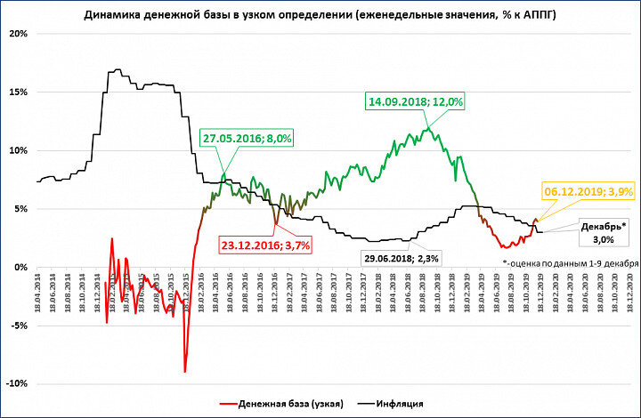 Уже третью неделю узкая денежная база растёт быстрее инфляции, а значит растёт в реальном выражении.