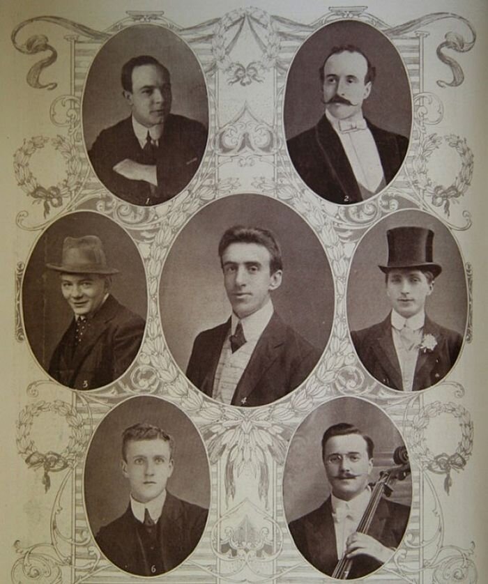 В 1912. Это судовой оркестр "Титаника", игравший до последнего.
