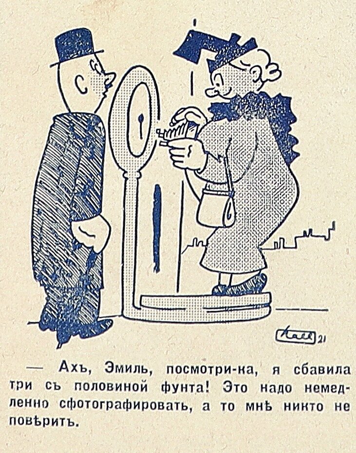 Карикатура - это жанр очень близкий к комиксу: по сути, современные юмористические веб-комиксы зачастую представляют из себя некую инкарнацию популярного в прошлом веке газетного искусства. Кроме того, как и современные комиксы, карикатуры зачастую высмеивали текущие реалии, различные жизненные проблемы и происходящие в обществе события. Но о чем конкретно шутили, к примеру, в начале прошлого века? Давайте посмотрим. Пользователь сайта Пикабу под ником Mircenall работает в музее и, помимо всего прочего, занимается сканированием старых печатных изданий. Как сообщил сам Mircenall в одном из своих постов, однажды к нему в руки попало несколько экземпляров русскоязычного латышского журнала 30-х годов прошлого века. В конце каждого из выпусков данного журнала находится так называемая «страничка юмора», в рамках которой печатались различные юмористические авторские иллюстрации, вроде той, что вы можете видеть ниже. Обнаружив такие сокровища, упомянутый выше работник музея справедливо предп