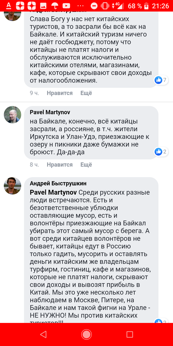 - "Китайцы приезжают гадить". Это скудоумное заявление можно было бы совсем не комментировать, но встречается оно слишком часто. Китайцы, как и другие люди ездят на отдых чтобы, как ни странно отдохнуть и набраться хороших впечатлений. То что они громко галдят и сморкаются - ну чего подать, хорошо бы, конечно гидам говорить о нежелательности подобного. Иногда попадаются люди не самые приятные и (или) адекватные, но тут уж просто выборка статистическая. Гадят и мусорят они не больше сограждан.