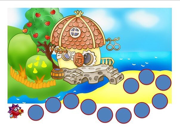 Здравствуйте! Сегодня хочу предложить вам научить детей играть в "бродилки". Подобные игры существуют давно, детям они нравятся. Почему я могу назвать такие игры развивающими ум и творчество, внимание и воображение, умение действовать по инструкции и подчиняться правилам? 1. Ребёнок видит картинку с определённым сюжетом, по которой можно придумать целую историю. Предложите ребёнку это сделать, после того, как рассмотрите с ним игру. 2. Эта игра в одиночку не интересна. Играть нужно как минимум вдвоём, лучше- втроём или вчетвером. То есть эта игра с правилами, которые нужно соблюдать. 3.В этой игре ребёнок лучше осваивает счёт, особенно, если поле игры большое и чисел много. 4. Если дети коллективно рисуют поле такой игры-вообще замечательно! Это такой простор для творчества! Мы в своё время придумывали такие игры сами и рисовали на бумаге ходы, придумывали правила, лепили кубик , а фишками были монетки или пуговицы. Подобные игры учат счёту, учат действовать по инструкции, что очен