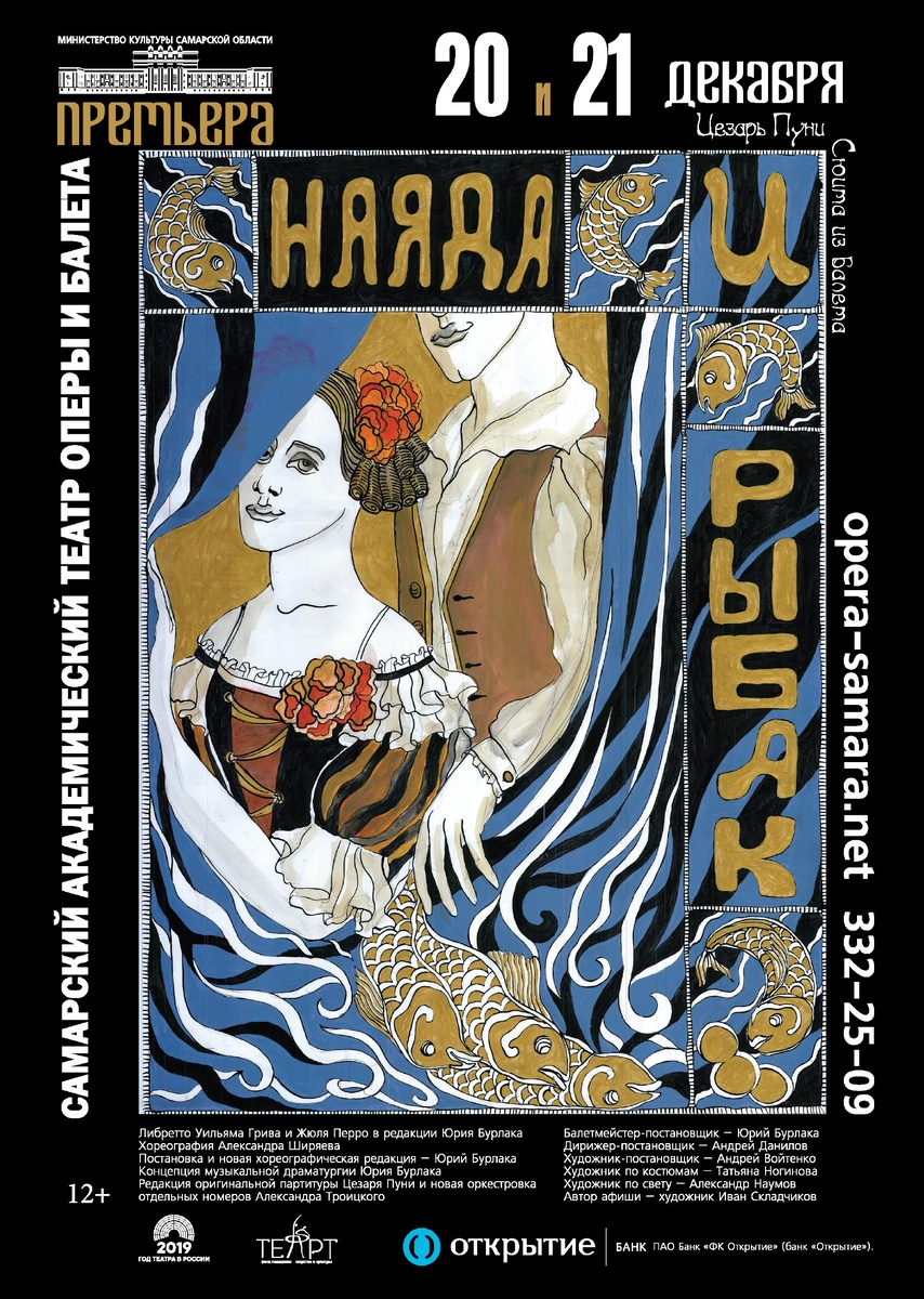 Молодой сицилийский рыбак Маттео забрасывает сеть в море. Вдруг из глубин появляется гигантская раковина, внутри которой - Наяда, та, что являлась юноше во снах. Маттео благоразумно отворачивается от чаровницы и хочет поспешить к своей невесте Джаннине, но ундина завораживает его... Впервые в Самаре - балет "Наяда и рыбак"! Премьерные спектакли пройдут совсем скоро, 20 и 21 декабря. Любовный треугольник воплотят: Наяда - Марина Накадзима, Ксения Овчинникова, Маттео - Сергей Гаген, Джотаро Каназаси, Джаннина - Ксения Овчинникова, Анастасия Тетченко. http://www.opera-samara.net/balet/concert885.html