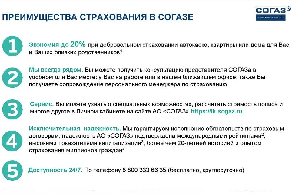 В компании Согаз ипотечное страхование отличается следующими преимуществами: