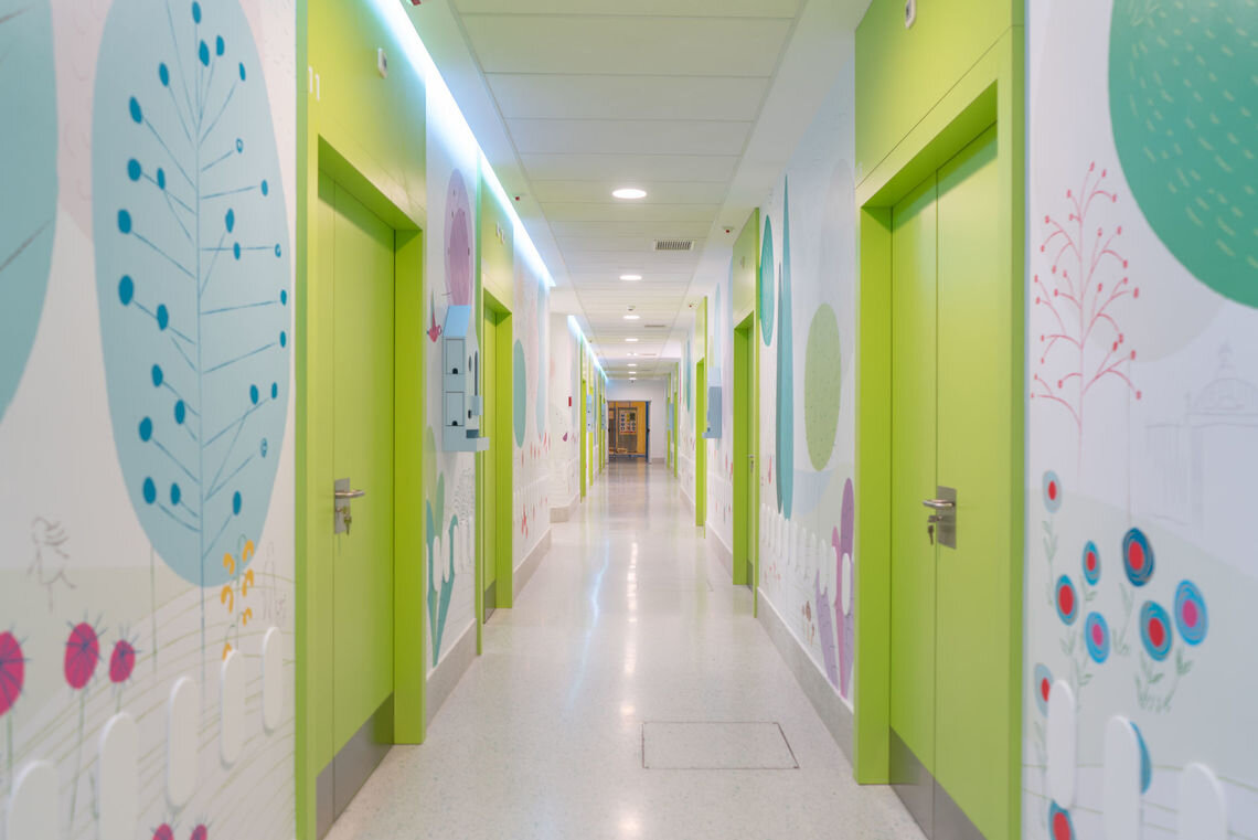 Использование цифровой печати на обоях Vescom гарантирует, что вы можете точно воплотить идею в красивый принт любого размера. Например, так сделали архитекторы из Play Office в детской больнице в Мадриде. #цифроваяпечать #больница #обои #настенныепокрытия #виниловыеобои #wallcovering #Vescom #Ортграф