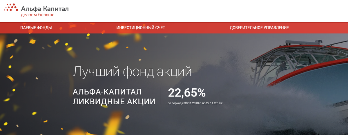 Мой опыт инвестирования в Альфа Капитал Этот отзыв об Альфа Капитал полностью основан на моем личном опыте инвестирования в данный сервис. Я никаким образом не связан с данной компанией, и буду стараться максимально объективно осветить все детали. Что такое Альфа Капитал? Альфа Капитал - это инвестиционная управляющая компания, основанная в 1992 году. Домен alfacapital.ru зарегистрирован в марте 2000 года. Компания предлагает паевые фонды с различной доходностью и уровнем риска. Заявленная доходность от 10% до 28% годовых. Начало работы с Альфа Капитал Регистрация на сайте очень удобная. Теперь можно зарегистрироваться через ГосУслуги, и не нужно будет вводить кучу данных. Я регистрировался в конце 2018 года через мобильное приложение, и это тоже было довольно просто, т.к. я был клиентом Альфа Банка. После регистрации я выбрал интересующий меня ПИФ "Ликвидные акции". На тот момент он выглядел наиболее привлекательным из-за хорошей истории доходности. На сайте указана информация о т