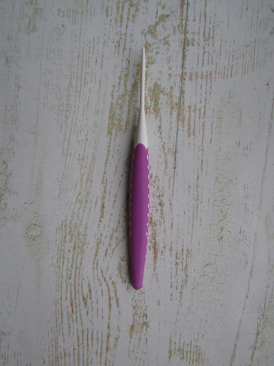 Фирма Prym производит инструменты для вязания. У них есть серия "эргономичная". Про спицы я уже писала. Купила крючок со скидкой в интернет магазине. На мой взгляд он лучше чем спицы из этой серии. Во всяком случае он не пружинит. Упакован в коробку из картона. Вся информация на английском языке. Выглядит странно, кажется что он быстро сломается. Крючок выполнен из пластика. Головка крючка самая обычная. Ручка прорезиненная. Крючок не скользит в руке, но кажется тяжёлым. В процессе вязания не устала держать крючок и пальцы не болели (долго вяжу). Лично мне показалось, что крючок держать неудобно. Обычно покупаю инструменты для вязания фирмы Pony. Они производят крючки с обычной круглой ручкой. Думала, что не привыкну к эргономичному крючку. Ошиблась, буквально через пару минут вязания подумала:"ой! Он очень удобный! Какой классный". Тем не менее я привыкла к металлическим крючкам. Этот боюсь сломать. Мне кажется его лучше использовать для вязания из тонкой и воздушной пряжи. Если