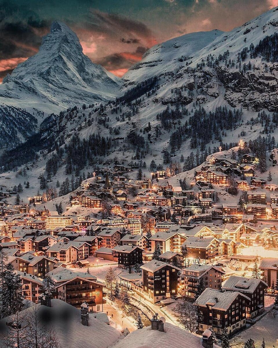❄️Церматт – уютный альпийский городок в Швейцарии, в самом конце ущелья Маттерталь. От Италии его отделяет горная гряда, за перевалом лежит уже итальянский курорт Червиния.
