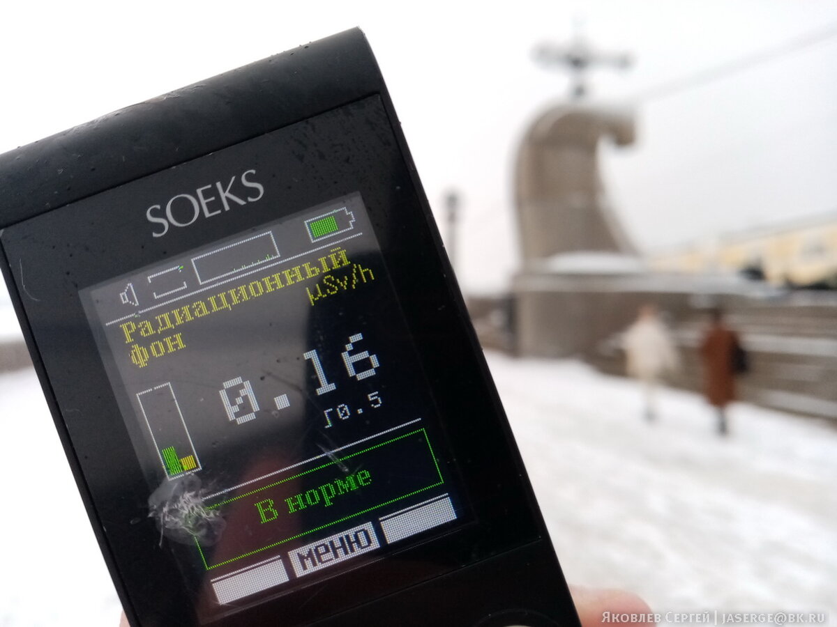 После моего поста про добычу целестина на Пинеге на меня буквально накинулись к комментариях и сообщениях люди, говорящие, что я сею панику и отваживаю туристов. Хотя там все подробно расписано, чем опасен целестин/"природный" цезий. А излучает все вокруг нас, что-то больше, что-то меньше. Даже в самом центре Архангельска можно увидеть такие точки. Например, памятный знак "400 лет Архангельску" на городской набережной на мысе Пур-Наволок. Вокруг него фон нормальный. А вот на гранитных плитах уже больше нормы. Безопасным считается уровень радиации до величины, приблизительно 0.5 микрозиверт в ч а с (до 50 микрорентген в час). до 0.2 микрозиверт в часс (соответствует значениям до 20 микрорентген в час) - это наиболее безопасный уровень внешнего облучения тела человека, когда "радиационный фон в норме". Верхний предел допустимой мощности дозы – примерно 0.5 мкЗв/час (50 мкР/ч). А теперь можете вспомнить когда летом на этих ступенях часами сидят люди слушая уличных музыкантов или н