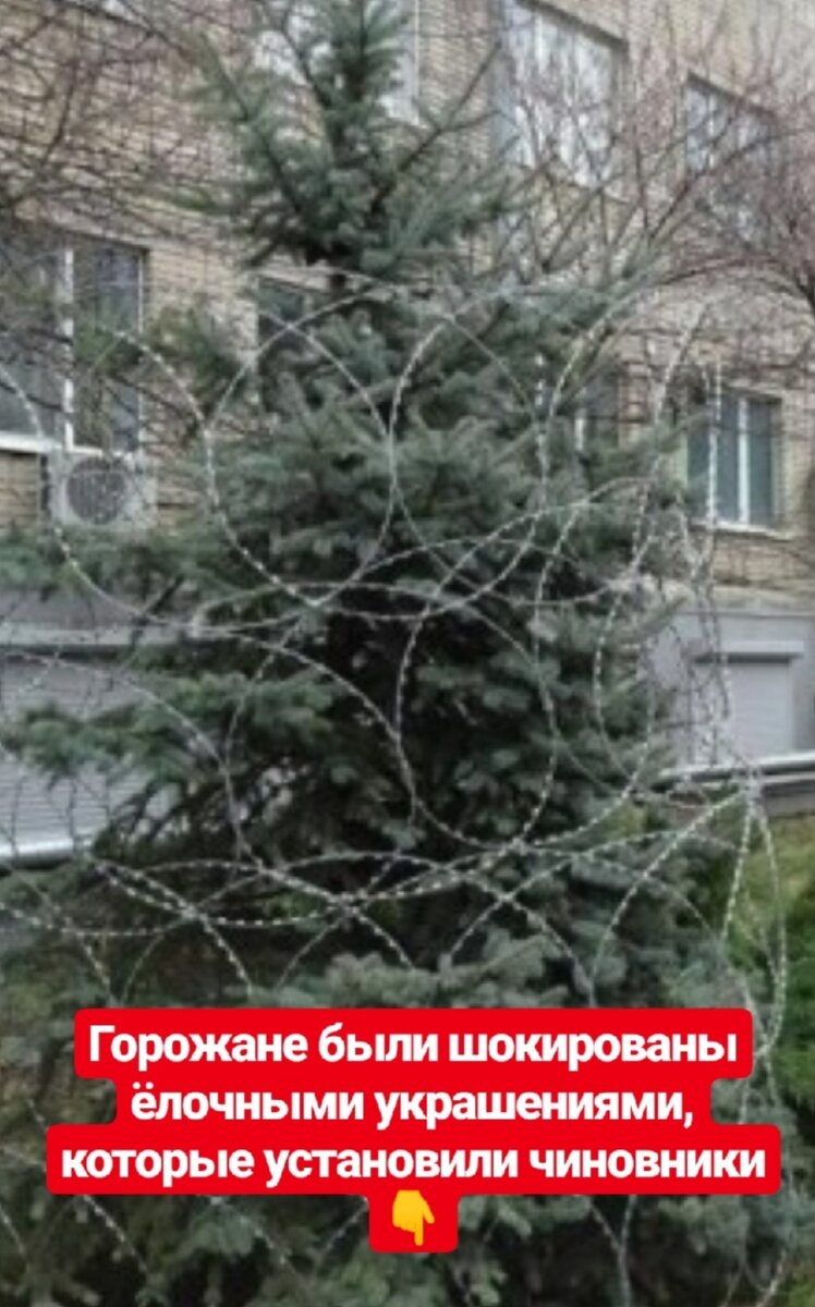 Горожане были ШОКИРОВАННЫ ёлочными украшениями,которые установили чиновники. В Ростове-на-Дону градоуправляющими структурами было принято решение украсить ёлочки колючей проволокой. По их словам - это сделано для того,чтобы горожане не украли символ Нового Года.