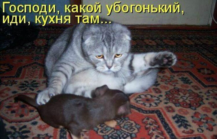 Всем желаю продуктивного и хорошего дня! Сегодня у нас коты и собаки! Да, мы все прекрасно слышали раньше, что они реальные враги в настоящем, не интернетном, мире. Отчасти, это так, к сожалению, сама была свидетельницей того, как стая бездомных собак загнала домашнего кота на наш дачный участок ночью и задушила его. Увы, тогда я совершенно ничего не могла сделать, а когда мы выбежали - было поздно. Наш первый кот, дачный, практически дикий, тоже пострадал от лап псов. И тоже - насмерть. Однако, в условиях одной квартиры, коты и собаки обычно живут тихой и мирной жизнью. Иди, покушай... Говорят, что коты и собаки - злейшие враги! А вот эти, похоже, стали лучшими друзьями. Ветрянка? А вот так кот среагировал на фигурку песика-далматинца. Интересно, как бы он повел себя, если бы встретил настоящего щенка?)) Помню, я рассказывала вам о том, как мы ездили к подруге в гости, где уже живет взрослая кошка (которая оказалась размером с котенка-Линкса, а точнее, он оказался размером со взросл