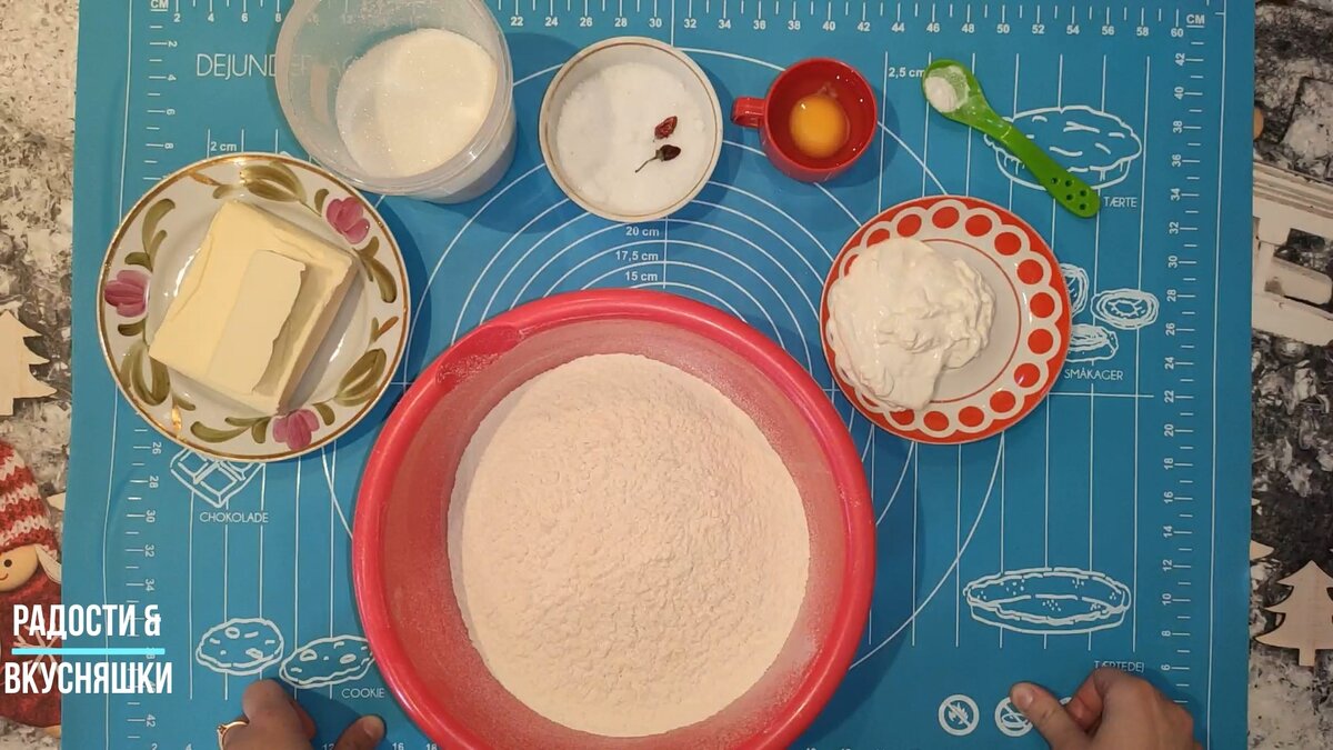 Всем привет. Добро пожаловать. Сегодня расскажу рецепт приготовления наивкуснейшей и нежной гаты с грецкими орешками. Ингредиенты: Для теста - мука 500гр. - сливочное масло 200гр. - яйцо 2шт. - щепотка соли - сахар 1ч.л. - сода 0.5ч.л. - сметана 100гр. Начинка - мука 120гр. - сливочное масло 70 гр. - сахар 200гр. - грецкие орешки(обжаренные) 100гр. - ваниль 1 пакетик или ванильный сахар. Приготовление теста. 1. Просеиваем муку в миску, добавляем соду, соль и сахар. 2. К этой сыпучей смеси добавим замороженное сливочное масло, перетертое на крупной терке. Тщательно перетираем смесь с маслом в крошку. 3.К смеси добавляем сметану с яйцом и замешиваем тесто. Тесто должно слегка липнуть к рукам. Готовое тесто переложить в пакет и положить в холодильник на 30 минут. Совет: Пока тесто будет лежать в холодильнике 30 минут, приготовим начинку и разогреем духовку до 180-190℃. Начинка. В муку добавим сахар и ваниль, а так же перетертое на крупной терке сливочное масло. Всю смесь п