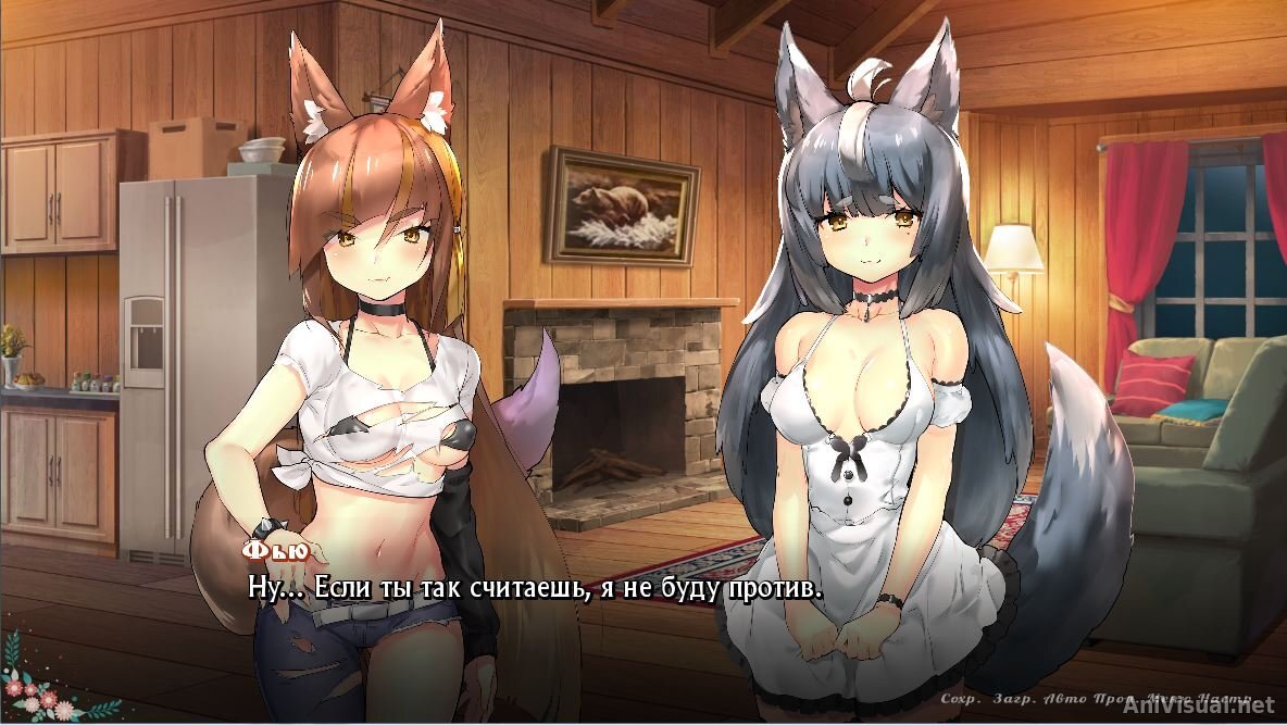 Здравствуйте сегодня я расскажу вам об одной интересной под названием "Волчьи Хвосты"(игра доступна на мобильных устройствах). "Wolf Tails" - визуальная новелла про двух девушек-волчиц. Мирари - тихая и добросердечная, сбежала в лес от своих обязательств. Фью - дерзкая и шумная, опасается людей и их культуры. Сюжет: Главный герой решает уехать подальше от цивилизации, чтобы жить в уединённой хижине как девственник-отшельник. Едва ему удаётся обжиться в своём теремке, как он обнаруживает незваного гостя, замёрзшую и голодную девушку-волчицу. По доброте душевной и по другим менее благородным причинам, наш молодой лесник приглашает её к себе в гости на ночлег. Но придя в себя и оправившись, она не торопится покинуть холостяцкую берлогу. Напротив, её всё вполне устраивает. Не проходит и пары дней, как за ней приходит другая девушка-волчица и обвиняет её в бегстве от своих "обязанностей". Единственное, чего хочет вторая гостья, так это вернуть в стаю сбежавшую принцессу. Тут-то герой и о