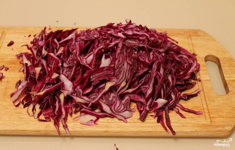 Достаточно простой рецепт тушёной капусты, на приготовление которого вы потратите всего 1 час. Ингридиенты: 800 гр. краснкачанной капусты 1 шт репчатого лука 100 мл уксуса 3 ст. ложки сахара 1 щепотка тмина 1 ст. ложка муки 1 щепотка соли 2 ст. ложки свинного жира ( можно другой) 2. Репчатый лук очищаем и измельчаем. 3. С глубокой сковороде растопите свиной жир. Добавьте на сковороду лук и тмин. Перемешайте, обжаривайте до золотистости. 4. Выложите капусту, добавьте соль, сахар и уксус. Влейте немного воды. Тушите 35-40 минут под крышкой, постоянно помешивая. В итоге должна получится мягкая капуста, но чтобы жидкость полностью не выкипала. 5. В конце добавьте муку, перемешайте. Тушите еще 15 минут. 6. Приятного аппетита!