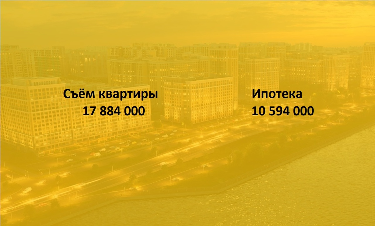 Снимать или купить? Если вы снимаете жилье, что останавливает вас от покупки собственного? У многих в головах сидит мысль, что это дорого, это непосильно, а когда начинаем с клиентами разговор про ипотеку, то слушаем о том, что в такую кабалу они не готовы влезать. Но снимать жилье готовы. Давайте посчитаем, а что затратнее на самом деле. Сколько вы переплатите за ипотеку и сколько за съем жилья. Только цифры, никаких эмоций. Итак. Давайте возьмем однокомнатную квартиру в Девяткино. Допустим, вы снимаете квартиру за 24 000 рублей. Мы взяли среднюю стоимость арендную ставку. Если вы будете снимать квартиру 30 лет, то заплатите 8 640 000, но это без учета инфляции. Наверняка, арендная ставка будет расти. Давайте исходить из официальной информации, за последние пять средняя годовая инфляция составила 6,9. Прибавляем инфляцию и получаем 17 884 000. Эту сумму вы выплатите за 30 лет съемного жилья. Теперь посчитаем ипотеку. В среднем стоимость готовой однокомнатной квартиры с чистовой
