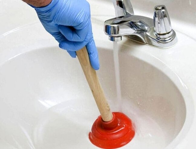 Помпу приставляют к отверстию раковины и мягко нажимают на неё. При этом резиновая основа помпы сминается и плотно прилегает к отверстию. После чего ручку помпы с усилием дёргают вверх, «вытягивая» засорение.