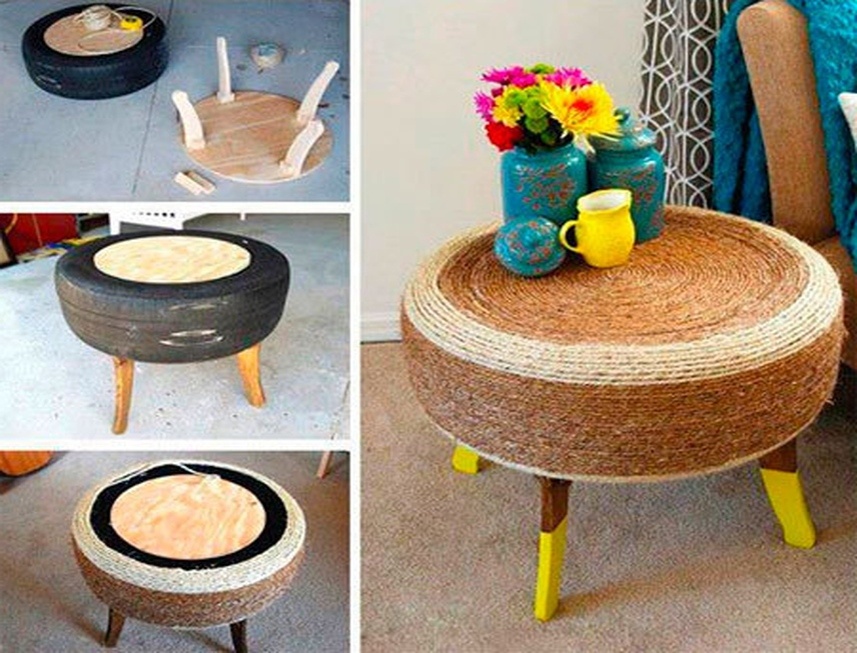 - Опору для садового или гаражного столика. Также понадобиться несколько больших камер и столешница. Она может быть деревянной, стеклянной, пластиковой – что есть в наличии.