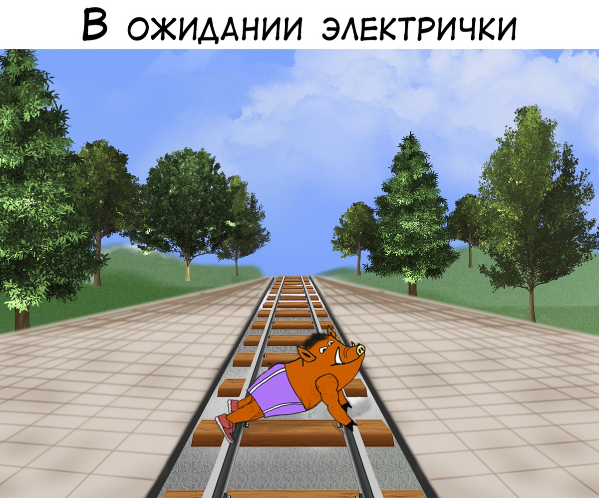 Занимайтесь спортом не только на площадках и в спортивных клубах, но и везде, где можно. Кабан в ожидании электрички занимается на рельсах и весьма доволен собой и своей формой. Впереди еще больше спортивных комиксов от Кабана! Подписывайтесь на мой канал, смейтесь и занимайтесь спортом с Кабаном! Читайте также: Знакомство с Кабаном. Кто я такой?