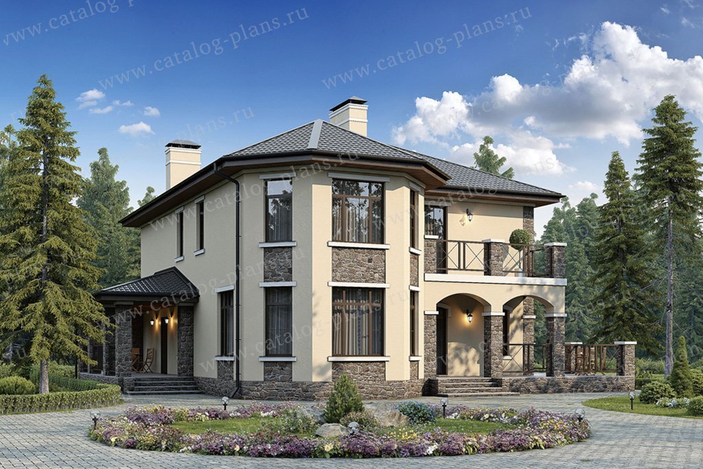 Проект двухэтажного дома 228м² с террасой в традиционном стиле