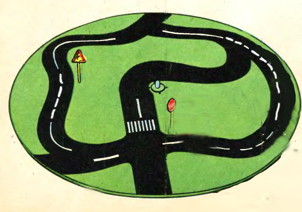 Случается, что дома лежат без дела маленькие детские машинки. Казалось бы, они только собирают пыль и занимают место в шкафу. Но не стоит избавляться от них. Потому что такая машинка может стать детским автотренажером, который можно изготовить своими руками. Я прочитал о таком тренажере несколько лет назад в одном журнале. Начнем с того что из фанеры или пенокартона необходимо изготовить большой круг, на котором надо будет нарисовать дорогу и дорожные знаки. Выглядит такой круг примерно так. Затем из проволоки нужно выгнуть руль и рулевую тягу. К тяге подсоединяется маленькая машинка. Вид сбоку наглядно показывает, как это должно быть. Корпус автотренажера собирается из небольших досок прямоугольной формы. Одна из них напоминает приборную доску настоящего автомобиля, в которой делается отверстие для руля. В дальнейшем он будет туда установлен вместе с рулевой тягой и машинкой, которую ранее соединили с ней. «Приборная доска» соединяется с нижней доской-«корпусом» будущего тренажер
