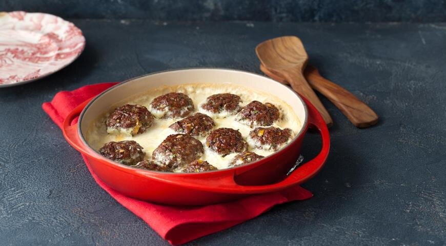 Залейте котлеты соусом, уменьшите температуру духовки до 130 °С и запекайте еще 15 мин.
