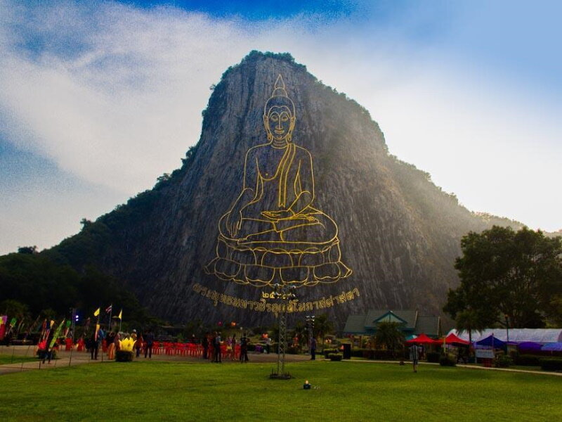 Гора, на которой запечатлен образ Будды, называется Кхао Чи Чан. Она расположена всего в 15 км от Паттайи. Именно после событий 1996 года город обрёл славу не только туристического, но и религиозного характера. Со всей страны сюда съезжаются тайцы, чтобы отдать дань уважения королю и поклониться Будде.
