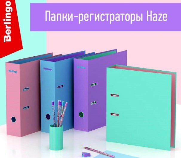 Бренд Berlingo представляет новинку, которая поможет грамотной и стильной организации важных документов. Папки-регистраторы серии Haze доказывают, что оформление рабочего пространства не менее важно, чем содержимое. Дизайн в пастельных тонах и оригинальных контрастных сочетаниях выгодно выделяет эту серию, а качество и исполнение порадуют самых взыскательных покупателей: надёжный арочный механизм из качественного металла и жесткий износостойкий картон с покрытием из матовой ламинированной бумаги гарантируют долгий срок эксплуатации. Папки эффективно экономят офисное пространство, идеально подходят для создания архива. На внутренней стороне обложки предусмотрено специальное поле для записей, ширина корешка – 80 мм. Ознакомиться с новинками и сделать заказ можно на оптовом сайте Рельеф-Центра или у менеджеров компании. Источник - kanzoboz.ru