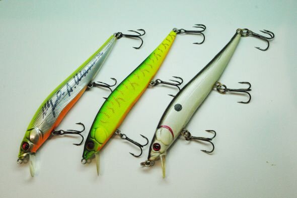 Сегодня расскажу про самый титулованный воблер этой конторы, а именно Vision Oneten 110 и пару его реплик. На фото (слева направо) : Megabass Vision Oneten, TsuYoki Wink 110F, ноунейм с AliExpress.