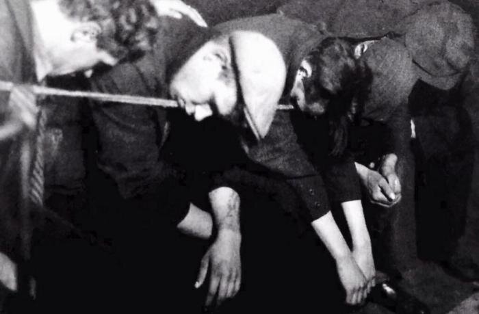 «Двухпенсовый подвес». Ночёвка классом чуть повыше уличной. В двухпенсовом подвесе клиентов сажают на длинную лавку, натянув перед ними канат, который удерживает спящих, как поперечная жердь клонящейся трухлявой изгороди. В пять утра человек, насмешливо называемый камердинером, канат снимает. Сам я в подвесах не бывал, но Чумарь ночевал там часто и на вопрос, можно ли вообще спать в подобном положении, ответил, что не так худо, как слабаки про то трезвонят, – лучше уж, чем на голом полу. Подобного типа пристанища есть и в Париже, только стоят там не два пенса, а двадцать пять сантимов (полпенни)». Джордж Оруэлл «Фунты Лиха в Париже и Лондоне». На фотографиях, впрочем, мы видим, что никаких лавок для сидения ночующим могли и не предоставлять – ненужная роскошь! – а просто предлагали им за два пенса стоя повисеть ночью на верёвках, как птичкам. А вот более роскошный вариант ночёвки, практически люкс, для тех толстосумов, у которых имелось на ночлег аж целых четыре пенса. Оруэлл: «Гроб»