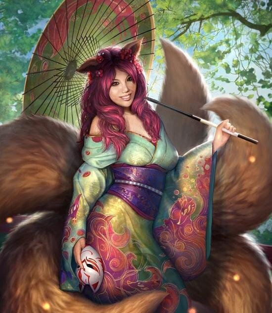 Образ лисы-оборотня, лисы-духа довольно широко распространен в Азии. Но за пределами Японских островов они почти всегда выступают резко отрицательными и малосимпатичными персонажами. В Китае и Корее лиса обычно оказывается заинтересованной лишь в человеческой крови. В Стране Восходящего Солнца образ лисицы-оборотня куда более многогранен. Неотъемлемые персонажи японского фольклора и литературы, японские кицунэ обладают чертами эльфа, вампира и оборотня. Они могут выступать как носителями незамутненного зла, так и быть посланниками божественных сил. Их покровительницей является богиня Инари, в храмах которой непременно присутствуют изваяния лисиц. Некоторые источники указывают, что Инари — высшая кицунэ. Её обычно сопровождают две белоснежные лисы о девяти хвостах. Японцы относятся к кицунэ с уважением со смесью опаски и симпатии.