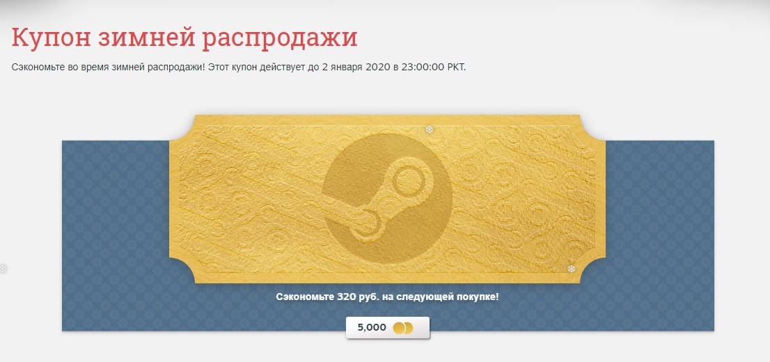 В магазине стартовала очередная зимняя распродажа. Зайдя на главную страницу, мы видим предложение потратить пару кровных, чтобы получить жетонов, а также перейти к списку заданий, чтобы за них тоже получить жетонов. Листая ниже, мы увидим товары, которые можно приобрести за те самые жетоны, среди них: купон на скидку, различные стикеры для чата, зимний профиль, эффекты для комнаты чата, фоны, значки и смайлики. Перейдя во вкладку с заданиями, здесь можно посмотреть, за какие задания можно получить жетонов совершенно бесплатно. Список заданий выглядит следующим образом: С каждым днём будет добавляться по одному заданию. Главные предложения распродажи: