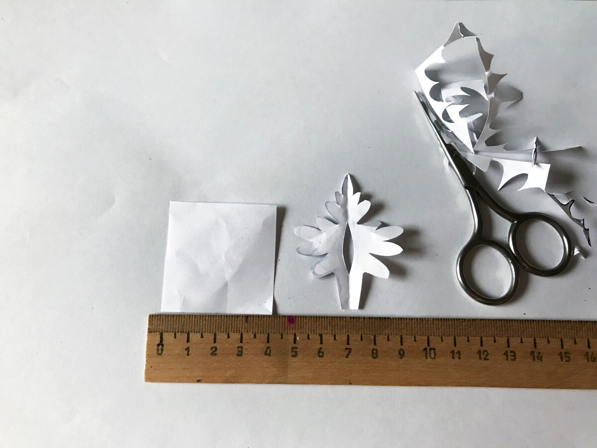 Сегодня я хочу показать, как сделать своими руками снежинки для новогоднего утренника дочке! Надеюсь, какой-нибудь мамочке пригодится! Материалы и инструменты: - лист бумаги, ручка, линейка, ножницы; - белый иранский фоамиран; - белый глиттерный фоамиран; - полубусина; - серебряный контур по стеклу или ткани; - зубочистка; - секундный клей; - зажимы для волос; - утюг. На квадрате бумажного листа размером 4х4 см рисуем резной лепесток. Вырезаем. Вырезаем 5 (10 - для двух снежинок) лепестков. Прикладываем выкройку к белому фоамирану, обводим зубочисткой. Из глиттерного фоамирана вырезаем три лепестка (6 - для двух снежинок). Обрабатываем все лепестки на нагретом утюг, придаём им волнистый край. Отрезаем круг (d=1,5 см). Наклеиваем на этот кружок пять белых лепестков. Отдельно склеиваем три глиттерных лепестка. В центр приклеиваем круглую деталь (похожую на цветочек). Ею мы закрыли неприглядное место склеивания лепестков. Отрезаем глиттерного фома узкую полосу чуть длиннее, ч