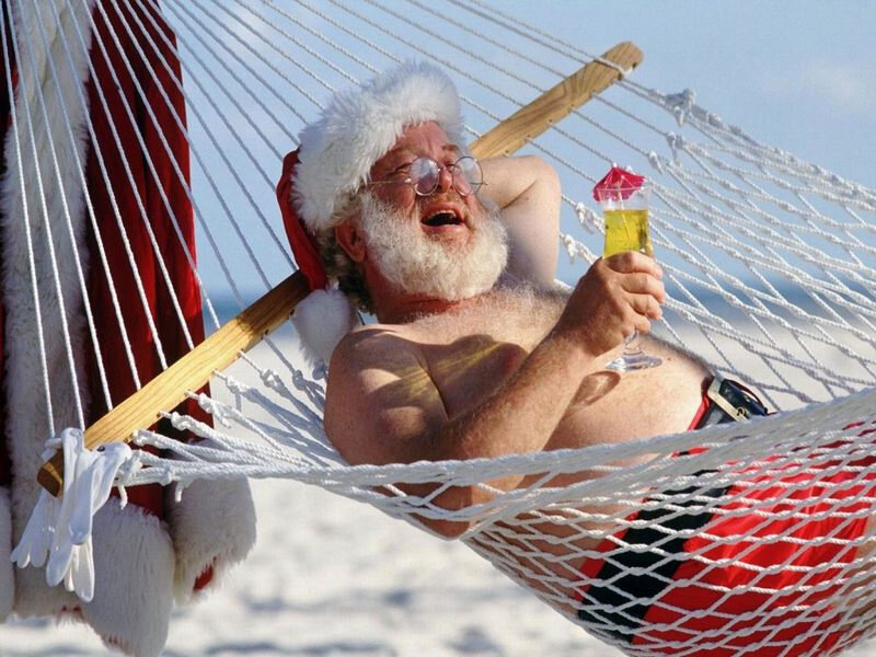 - В Австралии Санта Клаусу приходится в новогоднюю жару одевать парадные плавки и седлать водный мотоцикл.