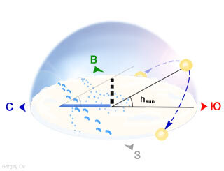 С точки зрения жителя северного полушария, в этот день подъем Солнца над горизонтом окажется минимальным, а тени в полдень будут самыми длинными из полуденных (рис.1).