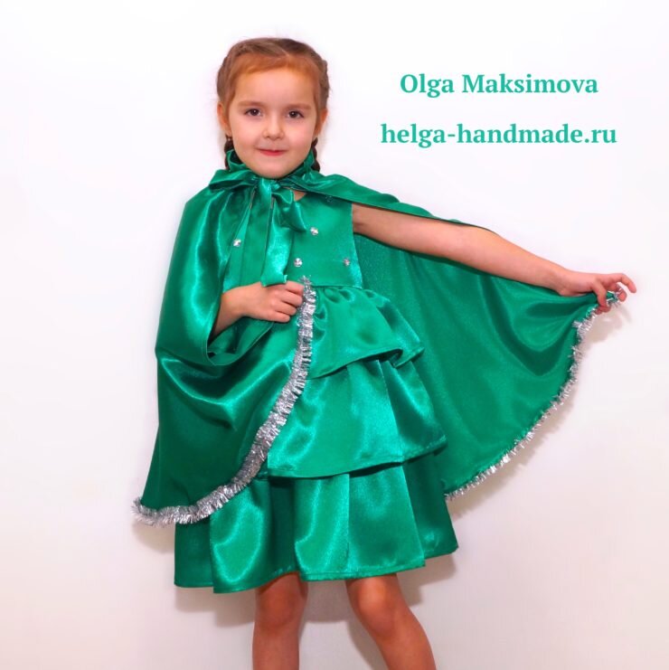 Новогодний костюм Ёлочки: платье с оборками и накидка-полусолнце