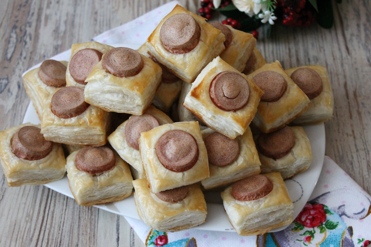 Здравствуйте, меня зовут Оксана, приветствую всех на своём кулинарном канале! Здесь я публикую рецепты простых, доступных и вкусных блюд, выпечки, салатов из самых обычных продуктов... Буду рада, если они кому-то будут интересны и полезны. Читайте, комментируйте, ставьте лайки, и Подписывайтесь! Сегодня, хочу предложить вам из вариантов быстрой выпечки на завтрак... Или к обеду, ужину! В этом рецепте не нужно замешивать\вымешивать тесто, или что-то даже просто перемешивать, не будет никакой долгой нарезки, и тёрка тоже не потребуется! Я думаю, для тех, кому всегда, и на всё, катастрофически не хватает времени — рецепт придется по нраву. Ингредиенты для приготовления: Готовое слоёное тесто — 2 листа Сосиски — 4 шт. Куриное яйцо — 1 шт. Для приготовления можно использовать и дрожжевое, и бездрожжевое слоеное тесто — но, оно должно быть именно в форме квадратных листов. И, обычно, в упаковке два таких листа. Вынимаем тесто из упаковки, выкладываем на рабочую поверхность стола, ждём к
