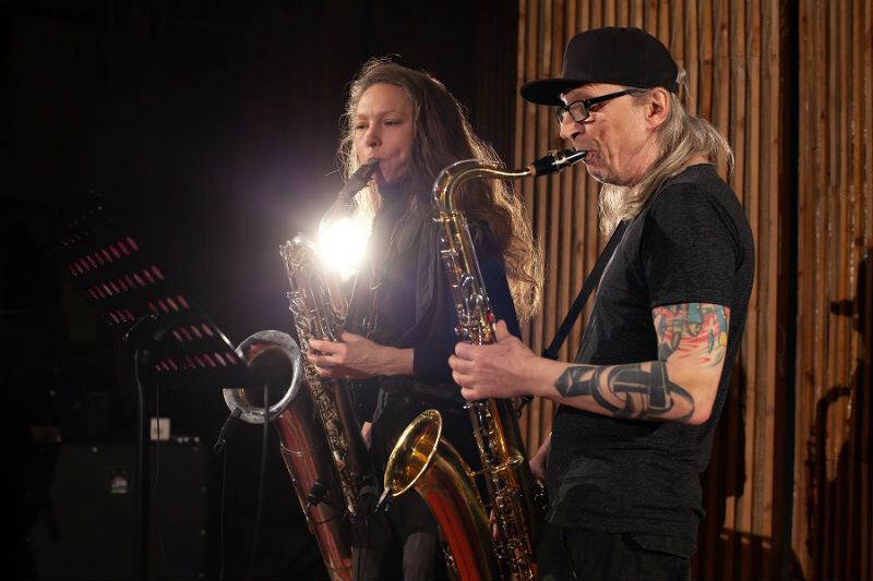 Для нас это нехарактерные песни, потому что в аранжировках должны были присутствовать скрипка и саксофоны и еще один вокал. Это все можно было записать, используя синтезаторы, но мы решили, что все инструменты должны быть живыми. Так у нас на записи появились Марина Корсакова: она записала очень красивое соло на скрипке для акустической версии «God Was Never on Your Side» и очень бодрое и искрящееся соло в песне «Motorhead». Еще нам очень помог Александр Загрянский с вокалом. В оригинале песня «Motorhead» записана на два голоса, и он исполнил одну из вокальных линий, чтобы все было приближено к оригинальному звучанию, хотя и с новым прочтением. Еще песне «Motorhead» нужны были саксофоны, тенор и баритон. Нам помог решить эту задачу Алексей Могилевский – его узнаваемая манера исполнения очень классно вписалась в трек «моторов». С партией саксофона баритон помогла Ксения Бакушина.