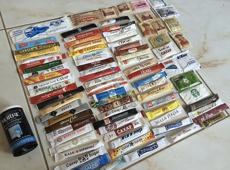 - Пакетированный сахар в стиках (сахар, которые вам подают в кафе с кружечкой кофе),