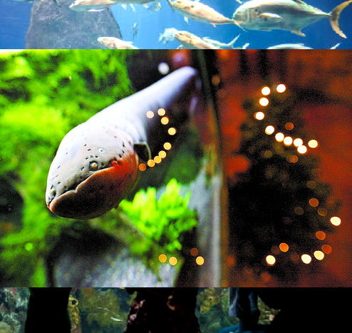 Электрический угорь заряжает собственную новогоднюю ёлку