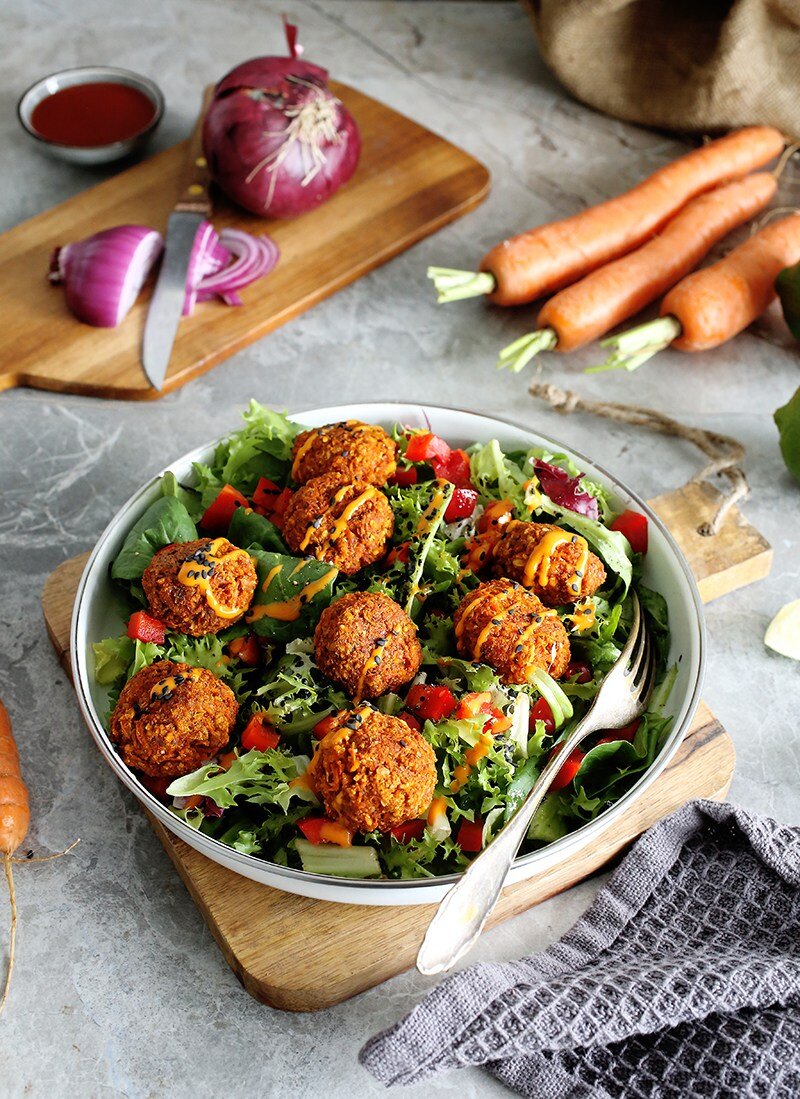 Морковные шарики ароматные, сладковато-пряные, слегка пряные и имеют идеальную текстуру: мягкие внутри и хрустящие снаружи. Это также очень универсальный рецепт. Пикантные морковные шарики делают отличную закуску с соусом, но вы также можете использовать их как салатную начинку, как «фрикадельки» для спагетти или в форме пирожка, они превосходны в гамбургерах. Ингредиенты 300 г тертой моркови (около 3 чашек)