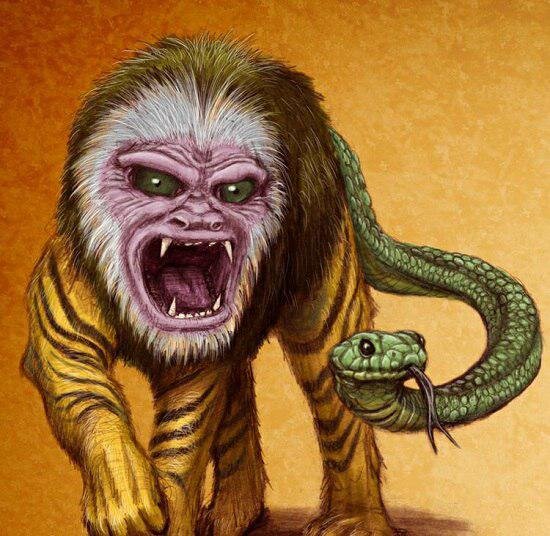 Нуэ Химера с головой обезьяны, туловищем тануки, лапами тигра и змеёй вместо хвоста. Нуэ может превращаться в чёрное облако и летать. Они приносят неудачу и болезни. Одна из легенд рассказывает о том, что император Японии заболел после того, как нуэ расположился на крыше его дворца в 1153 году. После того как самурай убил нуэ, император выздоровел. Продолжение следует... #мифы_японии
