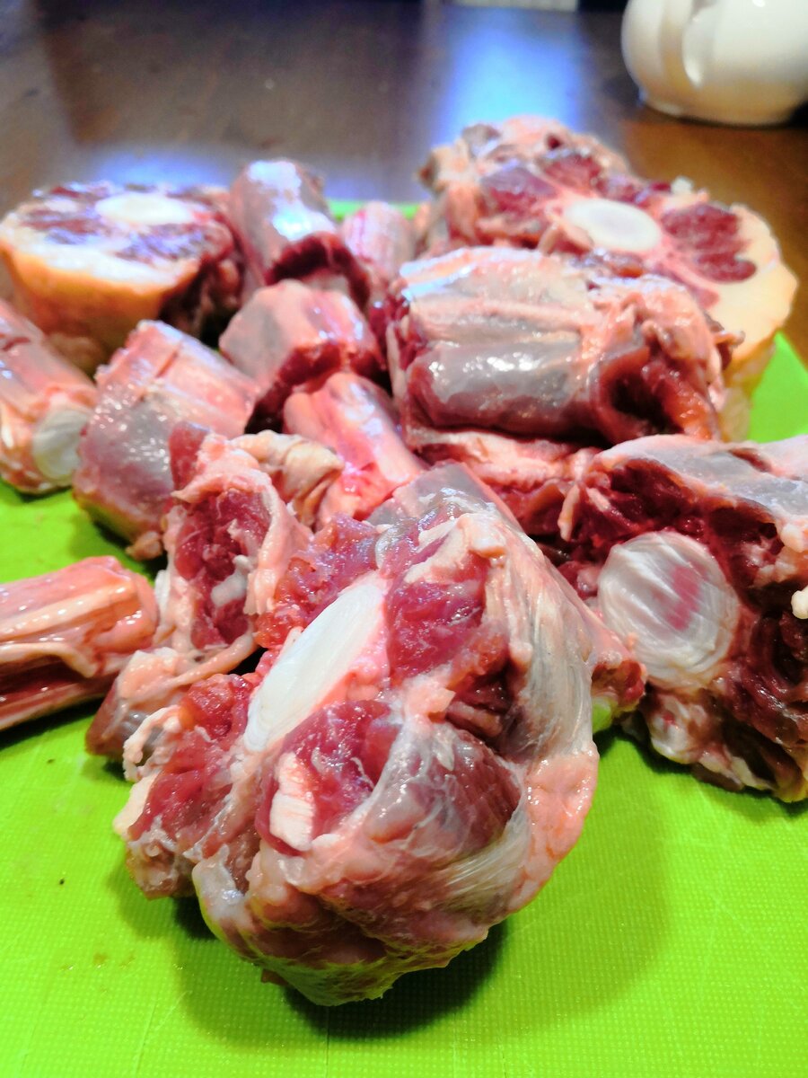 У разных национальностях готовят блюда из бычьих хвостов. Например в Испании Это очень популярное в Испании блюдо, в той или иной форме, было известно ещё в Древнем Риме, но свой современный вид оно обрело в испанской Кордобе конца XIX века, где после проведения боя быков туши убитых животных распределялись между жителями, чтобы закончить свой земной путь в горшках и кастрюлях местных хозяюшек. В нашей стране этому виду мяса, к сожалению отводится место только в холодце. Как приготовить их вкусно, впервые я увидела у Сталика. Но там он готовится на улице. Я же присаособила этот рецепт под духовку. Режем хвосты. Главное попасть ножом в хрящик, тогда можно обойтись без топора. Укладываем хвосты плотно в кастрюлю. Для таких вещей у меня есть глиняный горшок, я готовлю в нем. Дальше только соль и специи. Для вкуса можно добавить лук (я его обжарила) и чуть раздавленый чеснок. А вообще именно эти ингредиенты не обязательно. И на 9 часов в духовку, при температуре не больше 150 граду