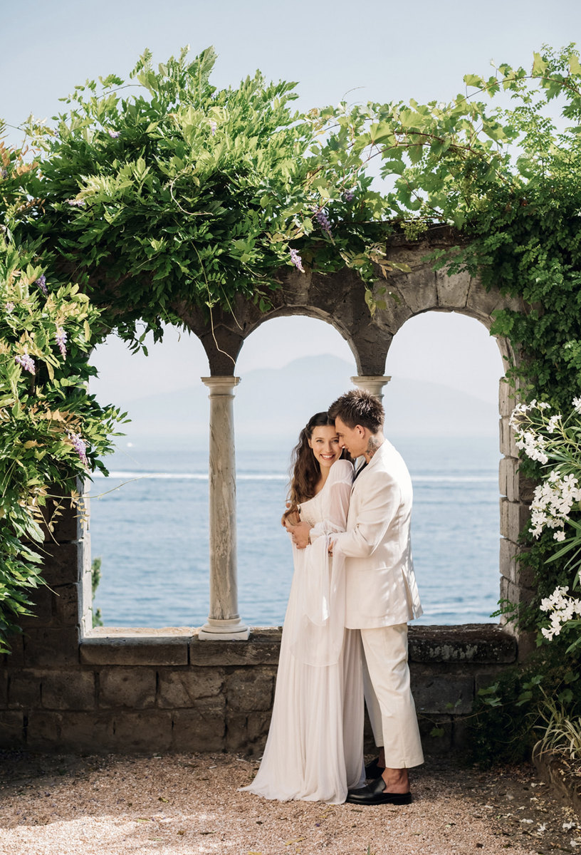 Одна из самых милых пар отечественного шоу-бизнеса — Регина Тодоренко и Влад Топалов — расписались в загсе больше года назад, в ноябре 2018, а пышную свадебную церемонию решили провести уже после рождения первенца, 3 июля этого года. Местом для торжества стала старинная вилла Астор в Сорренто, откуда открывается прекрасный вид на Неаполитанский залив. Кстати, предложение своей возлюбленной певец сделал неподалеку — во время отдыха на яхте где-то между Сардинией и Сицилией. Праздник начался с легкого коктейля на летней террасе виллы, после чего все гости направились в сад, где прошла торжественная часть церемонии. Далее пару и их близких ждал ужин в итальянском стиле.