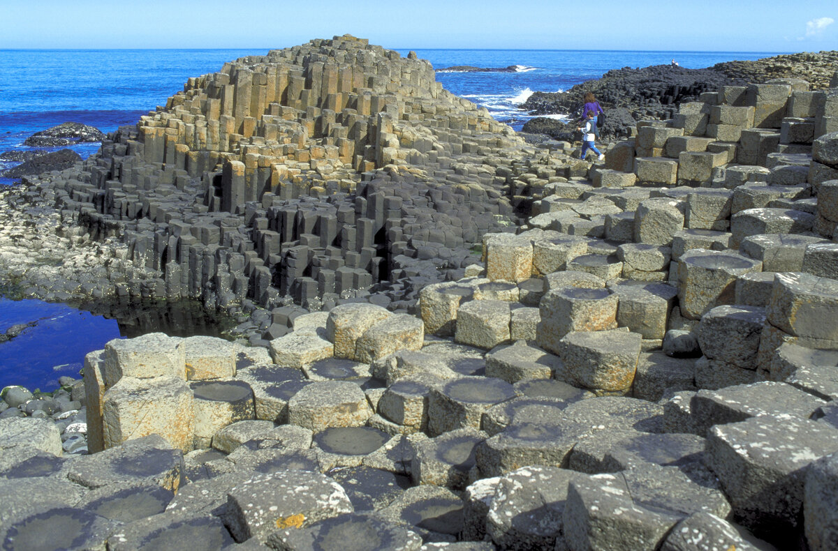 В этом месте 60 миллионов лет назад произошло извержение вулкана, излившегося большим количеством базальтовой лавы. Та после остывания сформировала гигантские кристаллы, которые и сегодня видны на северных берегах Ирландии. Около 37 000 почти идеальных по форме шестигранных колонн образовали «мостовую гигантов», которая успела обрасти легендами, самая популярная из которых гласит, что некогда по ней ходили гиганты, отсюда и её название. Расплавленный в недрах земли базальт образует довольно жидкую лаву, которая способна течь по горным склонам со скоростью 50 км/ч. После окончания извержения лава быстро застывает и покрывается трещинами, которые и формируют шестигранные структуры. Над уровнем моря гигантские кристаллы возвышаются на 6-12 метров, количество же колонн исчисляется десятками тысяч. Похоже, что гиганты начали строить мост через пролив, да почему-то не доделали. В прошлом люди терялись в догадках относительно происхождения этого феномена. Одни говорили об окаменевших зарослях бамбука, другие считали, что кристаллы родились на дне моря, лишь позднее было доказано, что виной этому – извержение вулкана.