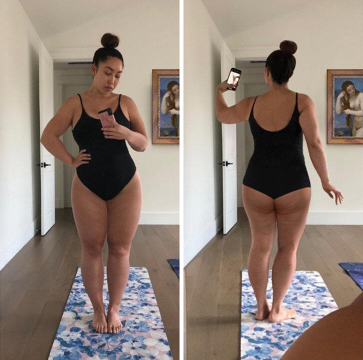 Кэсси Хо (Cassey Ho) — блогер и фитнес-тренер из США. Девушка занимается спортом, старается правильно питаться, но не стремится к идеальной фигуре. Почему? Ответ прост: Кэсси уверена, что идеала не существует. И она нашла наглядный способ доказать это. Я согласна с американкой, поэтому я решила поделиться с вами ее небольшим экспериментом. При помощи фотошопа Кэсси решила показать, каким был идеал женской красоты в разное время. Чтобы ее подписчики отчетливо увидели разницу между снимками, девушка редактировала одну и ту же фотографию. 1400–1700: «Идеальное» тело — пышное, с изгибами 1920-е: «Идеальное» тело — как у мальчика 1950-е: «Идеальное» тело — фигура «песочные часы» 1990-е: «Идеальное» тело — чрезмерно худое Середина 1990-х — 2000-е: «Идеальное» тело — с большой грудью и длинными ногами 2018: «Идеальное» тело — с тонкой талией и большими ягодицами А вот так Кэсси Хо выглядит на самом деле "Этот проект был интересным, потому что я не понравилась себе ни на одной фотографии